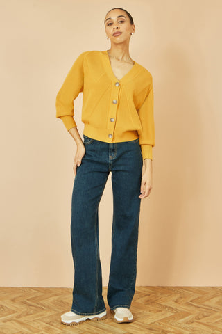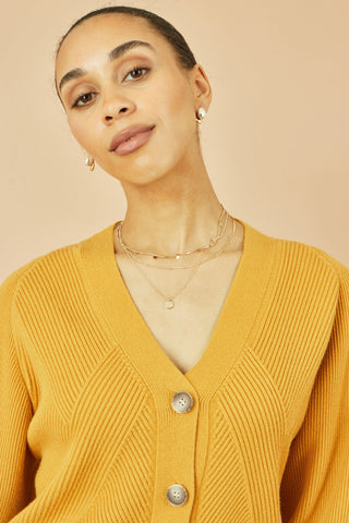 Senfgelbe Strickjacke in lockerer Passform mit Ziernähten