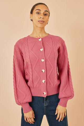 - Rosa Strickjacke mit Zopfmuster in lockerer Passform