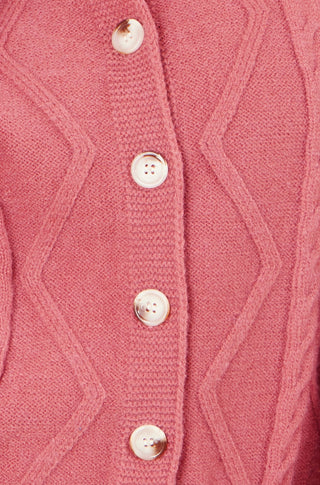 Rosa Strickjacke mit Zopfmuster in lockerer Passform