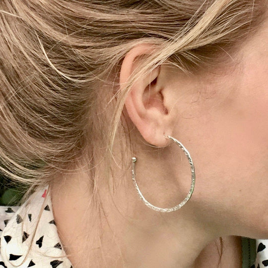 Artisan Handcrafted Metal: Sterling Silver on recycled brass Dimensions: Diameter 38mm All jewellery arrives in our luxury pouch and branded box Add classic style to your everyday look with these elegant Lydia Large Hoops. Stylishly hand...Κανονική τιμή €41,95 -
