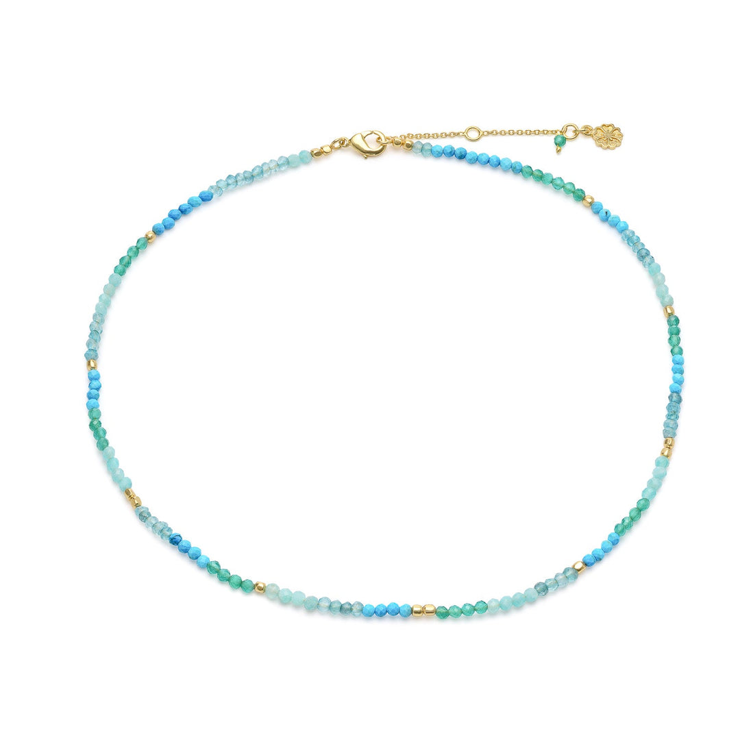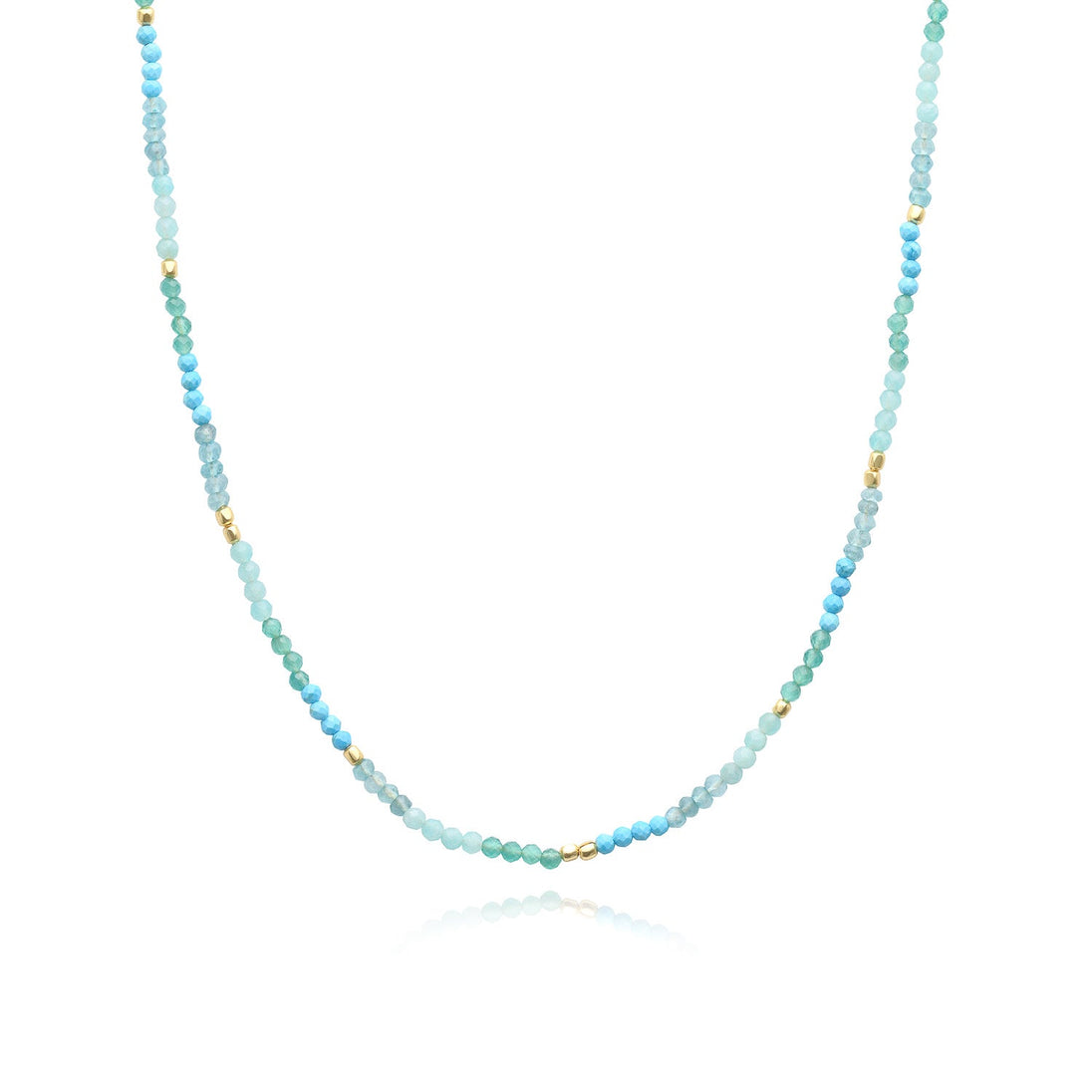 - Milos Mixed Gemstone Beaded Necklace Amazonite, Copper Turquoise & Green Jade