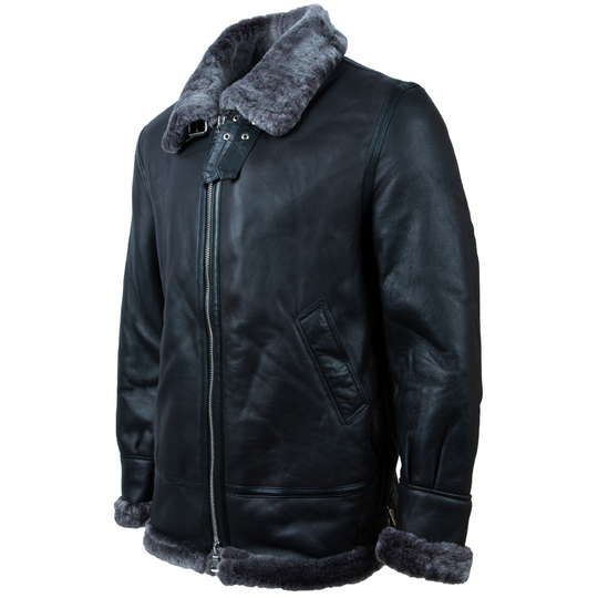 Veste en peau lainée pour homme – Noire avec fourrure Silverback