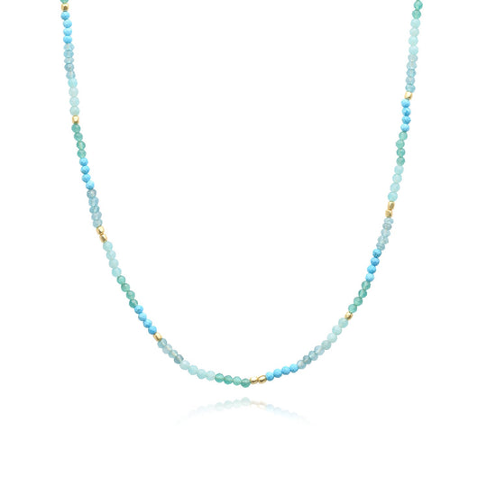 Collier Milos en perles de pierres précieuses mélangées : amazonite, turquoise cuivrée et jade vert