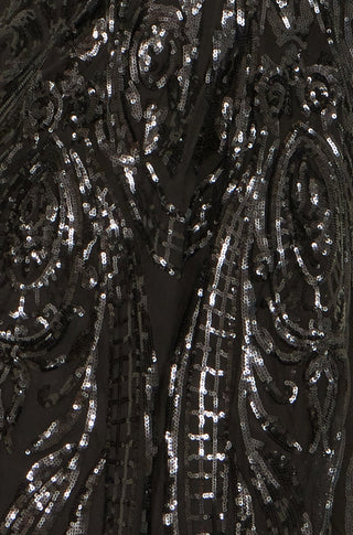 - Robe portefeuille midi à sequins noirs, ourlet fendu et manches longues