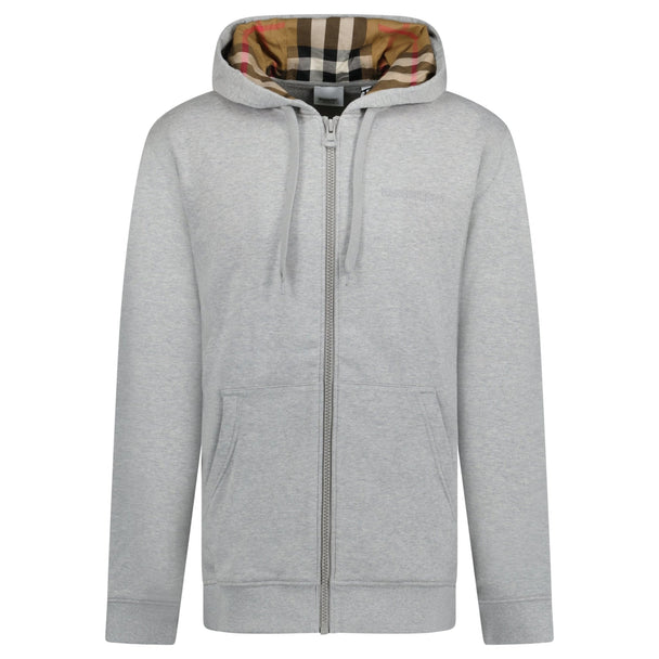 Burberry 'Hove' check Hood Embroidery Logo Hoodie Zip Sweatshirt Grey