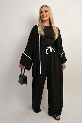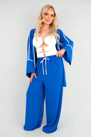 Contrast Trim Oversized Cardigan & Wide Leg Co-ord Set