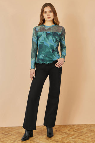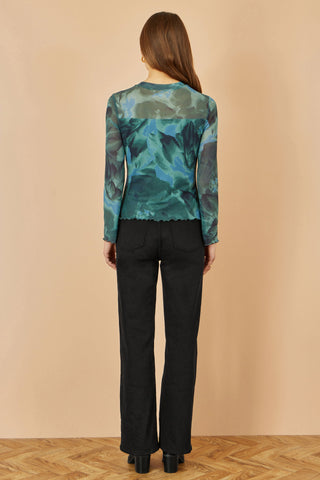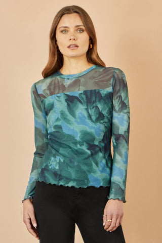 - Yumi Green Floral Mesh Top
