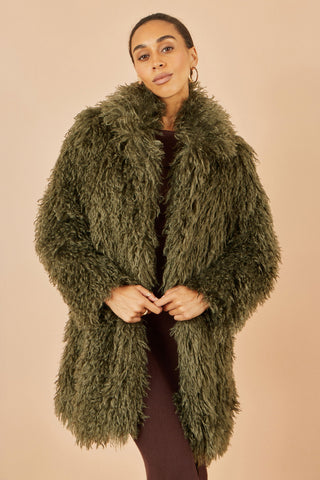 Make a statement with this big and bold faux fur coat. With long fur in a relaxed overcoat fit that is perfect for layering over casual or party fits. The button up design with over size collar will have you standing out from the crowd.
