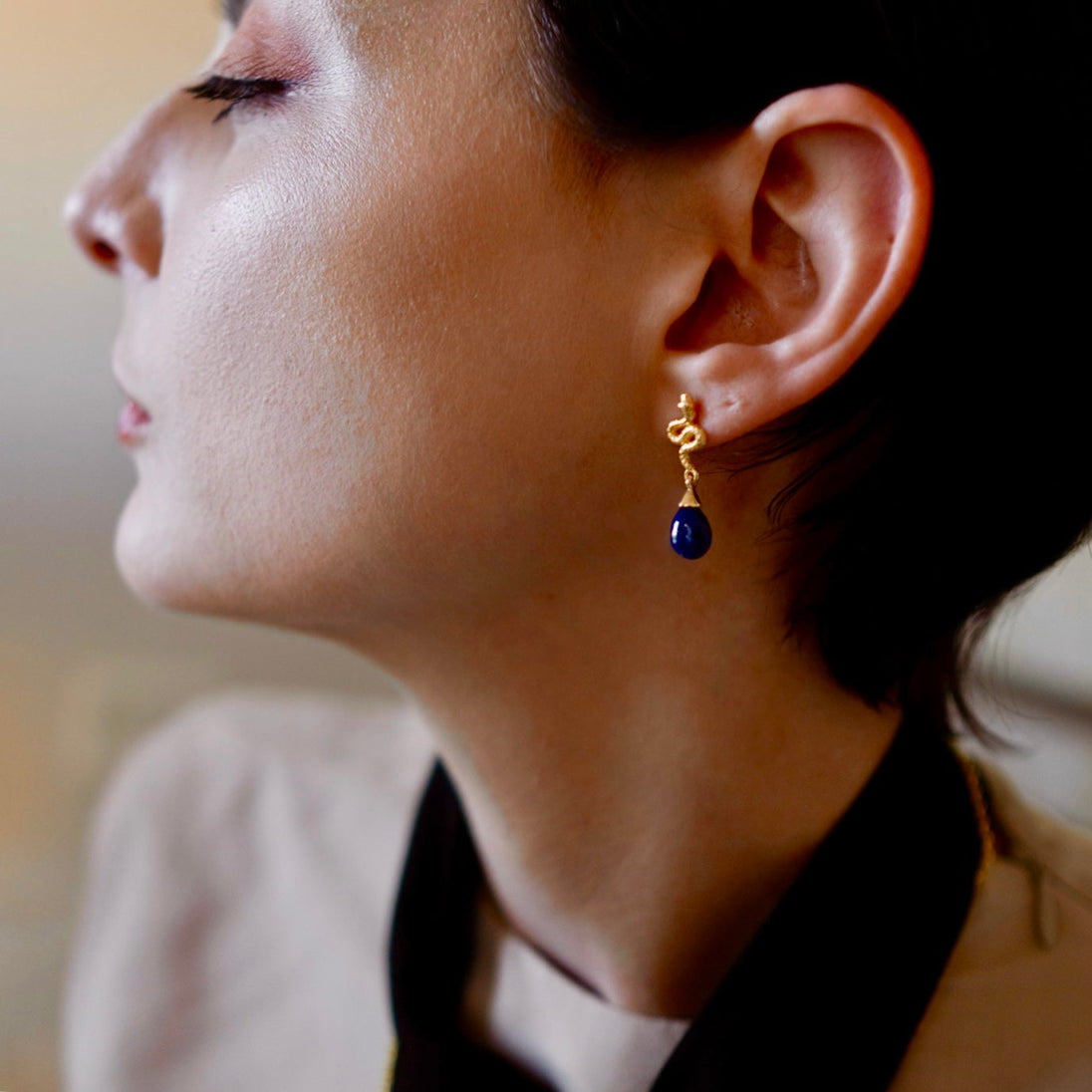 - Medusa Ohrhänger mit kleinem Edelstein, Lapislazuli