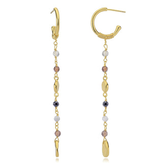 Mit diesen auffälligen Ohrringen setzen Sie ein stilvolles Statement. Die kleinen Creolen sind mit einer Steinperle und einem zarten Kettenanhänger mit vielen Goldnuggets verziert. Ihr harmonisches und modernes Design macht diese Ohrringe zum perfekten Begleiter für jeden Anlass – vom Tag bis in die Nacht.