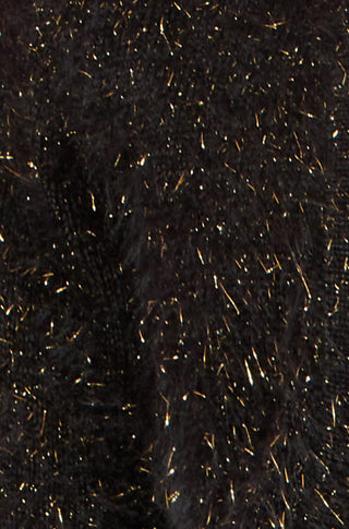 Schwarzer, metallisch glänzender, flauschiger Wimpernbolero