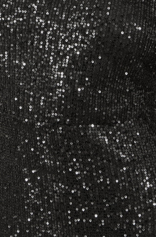 - Schwarzes, tailliertes Pailletten-Midikleid mit Trompetenärmeln
