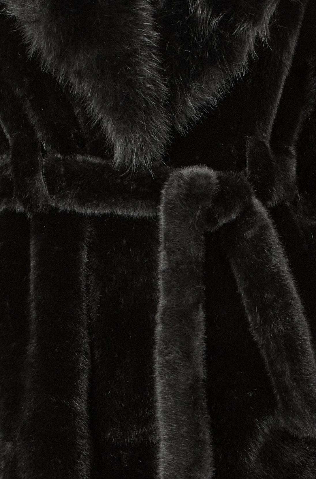 - Schwarzer Wickelmantel aus Kunstpelz mit übergroßem Kragen